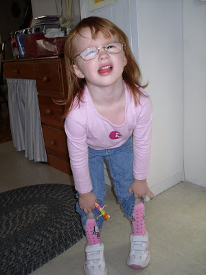 rhinestone buckle. As we walked through the store, she made it a point to stop EVERYONE (yes, EVERYONE) and ask "Don't you just LOVE my shoes?!?" Of course everyone said "Yes" and she always replied with "Oh yes, everyone loves my shoes. They are beautiful, like me." (So modest) However...we came upon one gentleman, who looked a bit...cranky, shall we say? She treated him the same as the others, "Don't you just LOVE my shoes?!?" He looked at her, he looked at me, and then looking back to her, he said "They look like shoes to me." I said "Come on Katherine, we need to get moving baby." She was not satisfied with his answer and said (quite loudly) to me, "Mommy, that man was a crab, huh?" Needless to say, I made it a point to walk a bit faster down the aisle.